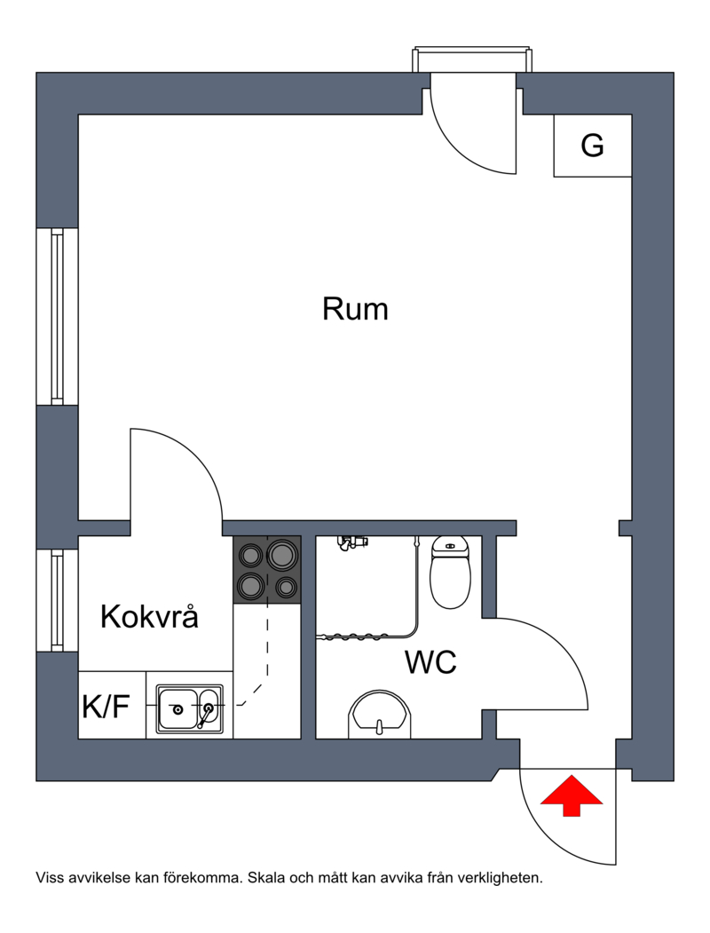 Fin etta med kokvrå. Perfekt som tex övernattningslägenhet eller första egna boende.